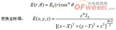 LED的光強(qiáng)分布不是一個(gè)理想的余弦分布,該分布可以表示為: