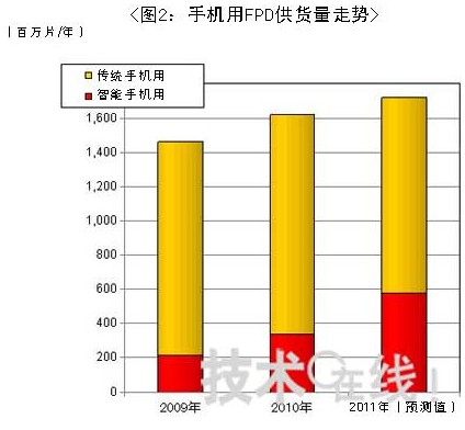- 2011年智能手機用FPD供貨量約5億8000萬片,增幅達72%