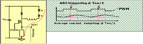 如果能夠保證連續(xù)導(dǎo)通模式運(yùn)行,這個(gè)觸發(fā)操作與隨后的模數(shù)轉(zhuǎn)換過程將會計(jì)算出均流值,而不是在電流增大期間通過軟件處理過程來估算均流,如圖2b所示。