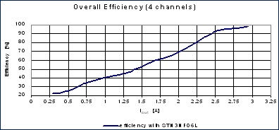 為了全面地分析采用反向降壓轉(zhuǎn)換器拓?fù)鋵?shí)現(xiàn)的數(shù)字電流控制器,圖4對能效與電流負(fù)載進(jìn)行了對比分析。在全負(fù)載時(shí),四條通道可實(shí)現(xiàn) 97%的總能效,這可滿足主要的節(jié)能要求。
