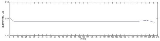 對(duì)RGB三基色的色坐標(biāo)數(shù)據(jù)隨時(shí)間變化情況進(jìn)行分析,分別得到圖2、圖3和圖4。