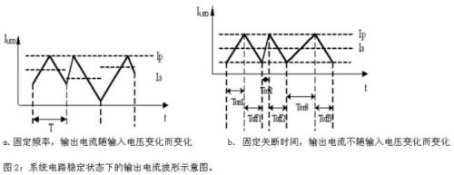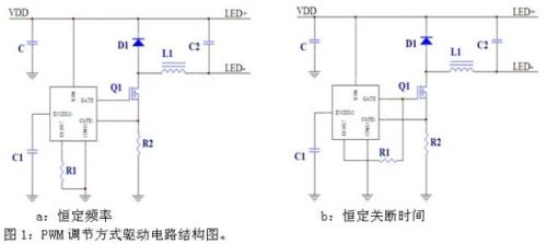 按照PWM調(diào)節(jié)方式,可以分成恒定頻率和恒定關(guān)斷時(shí)間兩類(圖1)。
