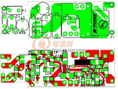 變壓器的次級由D5整流,由C11濾波。選用肖特基勢壘二極管來提高效率。由于C11在AC過零點期間提供能量存儲,因此它的值決定了線電壓頻率輸出紋波的幅值(因采用全波整流而為2 x fL )。因此可根據(jù)所需的輸出紋波來調(diào)整該值。對于所顯示的680 微F值,輸出紋波為正負IO的50%。電阻R17和C10用來衰減高頻振蕩,改善傳導(dǎo)及輻射EMI。