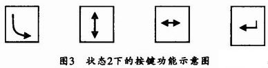 在狀態(tài)1及狀態(tài)3下,按鍵的功能比較容易理解,這里來(lái)對(duì)狀態(tài)2下的按鍵功能進(jìn)行說(shuō)明,圖3所示依次為1、2、3、4鍵。其中按鍵1可進(jìn)入設(shè)定狀態(tài),上面一行顯示參數(shù)的值,下面一行顯示當(dāng)前是第幾個(gè)參數(shù);按鍵2用于對(duì)當(dāng)前閃爍數(shù)據(jù)位進(jìn)行加1操作,可依次從0增加到9,當(dāng)增加到10時(shí),又自動(dòng)變?yōu)?;按鍵3用于改變?cè)O(shè)定的位,每按下一次,閃爍數(shù)據(jù)位向后移動(dòng)一位,當(dāng)移動(dòng)到第四位再按下此鍵時(shí),閃爍位變?yōu)榈谝晃?;按鍵4用于確認(rèn)參數(shù)的設(shè)定和保存。