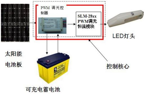 太陽能路燈的構成十分簡單(圖1)。從圖1所示的框圖中可見,其中最核心的部件,就是PWM調光控制器和恒流模塊。
