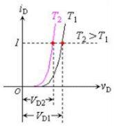LED路燈通常在露天工作,其環(huán)境溫度的變化是很大的。而LED的正向電流還和結溫有關,圖5就表明LED在不同結溫時的伏安特性。