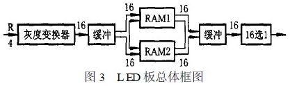 由此類推,把CRT 顯示的一幀單色畫面分成N場在L ED 點(diǎn)陣屏上顯示,每場顯示的時間為TPN ,在各場中,各像素由其對應(yīng)的控制碼來控制L ED 的通斷,通過視覺的積分效應(yīng),就產(chǎn)生了整個畫面的灰度效果。