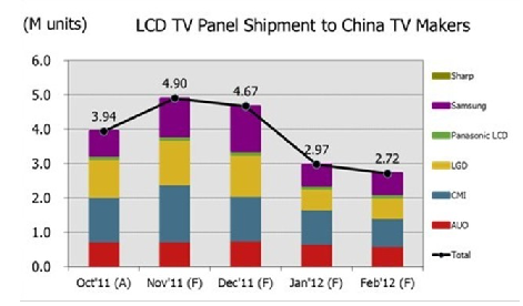 - 2012首季中國(guó)電視面板需求將下降