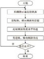調(diào)平軟件完成讀取縱向與橫向傾斜角度值、模擬顯示水準(zhǔn)氣泡指示、計算并顯示左右千斤頂調(diào)整方向等功能,其工作流程如圖6所示,其中單片機讀取角度數(shù)據(jù)的流程如圖7所示。車體調(diào)平裝置端程序通過串口讀取到傾角傳感器的縱、向傾斜角度值,根據(jù)角度值分別計算出左、右千斤頂?shù)恼{(diào)整方向和模擬水準(zhǔn)氣泡的中心位置坐標(biāo),然后將這些值通過串行通信分別發(fā)送到左、右操縱指示器上。