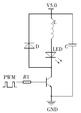 圖1 所示為驅(qū)動電路, 電感值的選擇以及PWM 波的頻率選擇在此驅(qū)動電路中相當(dāng)重要。選擇C8051330 芯片作為PWM 波的輸出, 采用定時(shí)器翻轉(zhuǎn)控制高低電平的時(shí)間,從而控制PWM 波的占空比。
