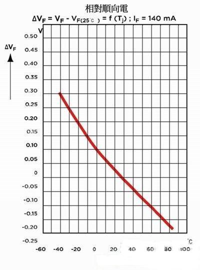 圖1 順向電壓隨接面溫度升高而下降