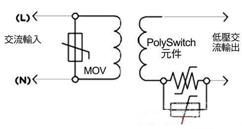 在照明系統(tǒng)中采用第二類功率源可成為降低成本、提高彈性的重要因素之一。固有的有限功率源,如變壓器、電源供應(yīng)器或電池等,可以包含保護組件,只要不依靠它們限制第二類功率源的輸出即可。非固有型的有限功率源,按照定義,具有一個分立保護組件,當電流和能量輸出達到預定值時它會自動中斷輸出,各種電路保護組件都有助于提供LED照明應(yīng)用第二類功率源的安全操作。圖4表示了一種協(xié)同保護策略的工作原理,它在交流輸入上采用了一個MOV,在輸出電路分支上采用了一個PolySwitch組件,可以幫助廠商滿足UL 1310第35.1小節(jié)針對開關(guān)和控制裝置的過載試驗要求。