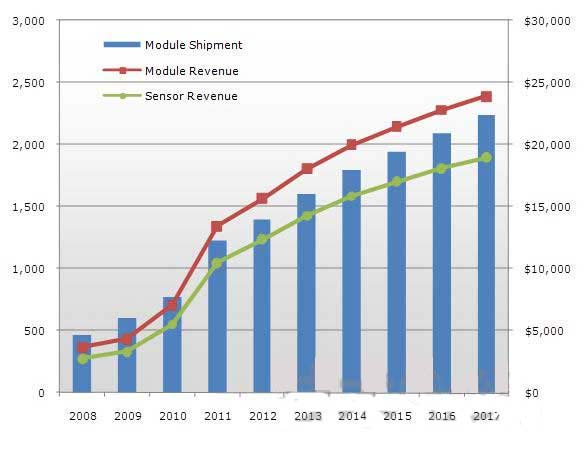 - 2011年觸摸面板的整體市場規(guī)模達到12億片,超過130億美元