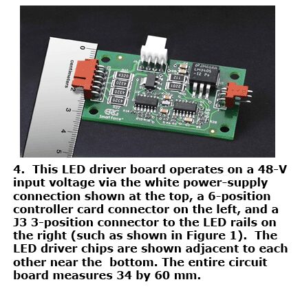 圖中C部分提供LED開(kāi)/關(guān)及調(diào)光控制。+ENABLE輸入控制背光的開(kāi)/關(guān),+PW脈寬調(diào)節(jié)斬波驅(qū)動(dòng)器的導(dǎo)通與截止,以實(shí)現(xiàn)調(diào)光。該設(shè)計(jì)可以實(shí)現(xiàn)得相當(dāng)緊湊(見(jiàn)圖4)。