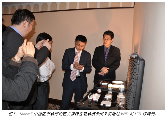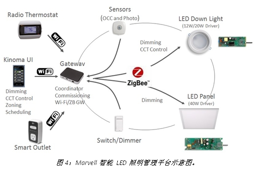 Marvell智能 LED照明管理平臺(tái)提供了完全集成的LED照明和無線控制系統(tǒng),因此不論是易用性的提升還是安裝成本的降低都趨向于極致,大大簡(jiǎn)化了使用和維護(hù)難度,使得非專業(yè)人員也能輕松應(yīng)對(duì)。該平臺(tái)的一大特色是允許終端用戶可以使用智能手機(jī)和平板電腦方案,使他們可以方便地從任何地方管理、分析并維護(hù)一個(gè)更具性價(jià)比的數(shù)字照明方案。