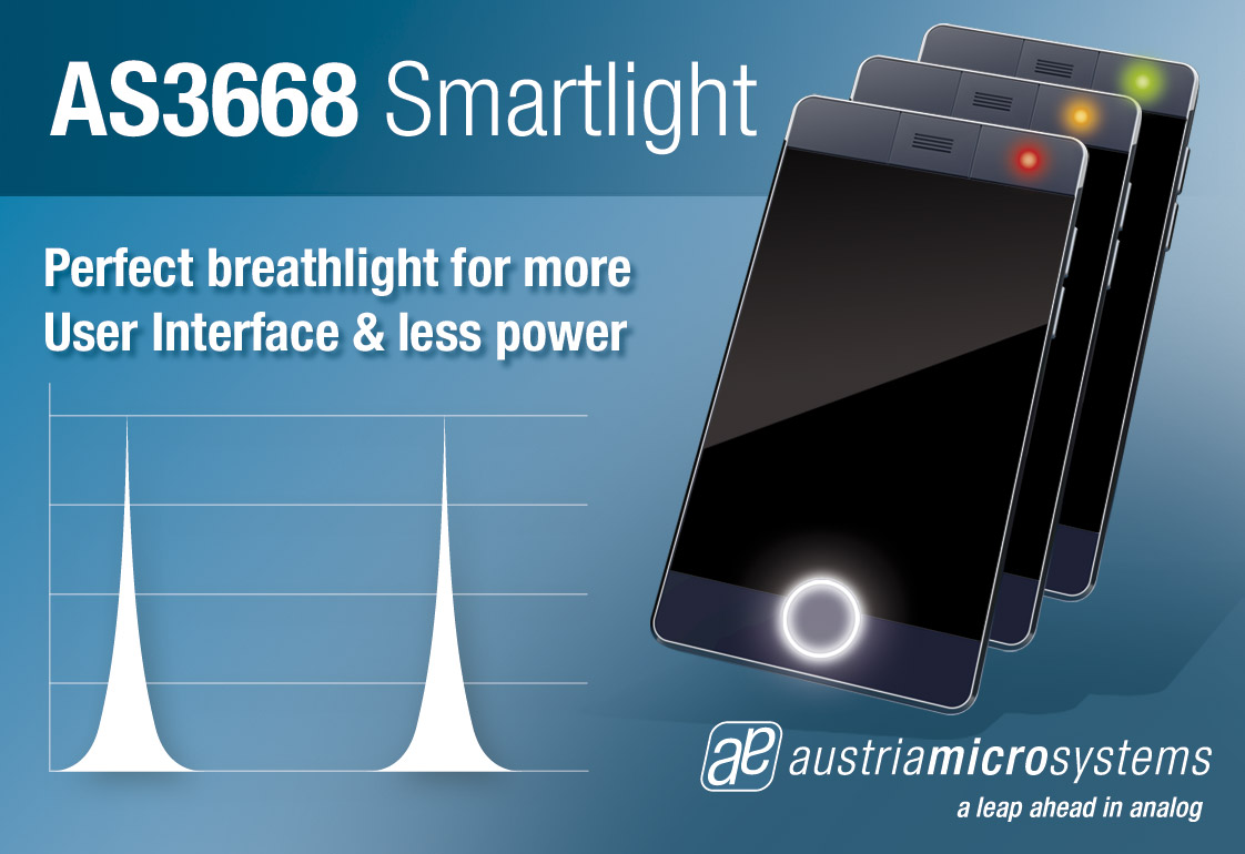 全球領(lǐng)先的高性能模擬IC設(shè)計(jì)者及制造商奧地利微電子公司(SIX股票代碼:AMS)宣布推出新款智能LED驅(qū)動(dòng)芯片AS3668。新品最多可控制4個(gè)LED,為手機(jī)和平板電腦帶來(lái)精致的指示燈光效,且無(wú)需動(dòng)用耗電顯著的基帶處理器。