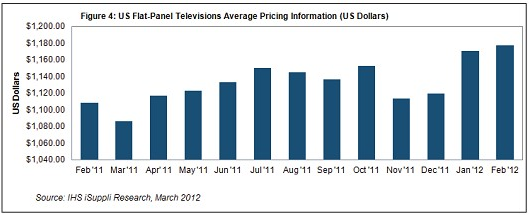 據(jù)IHS iSuppli公司的美國電視價格與規(guī)格追蹤報告,盡管有上年結(jié)轉(zhuǎn)的庫存,但由于這些庫存具備高端功能,2月份美國平板電視價格連續(xù)第三個月上漲。