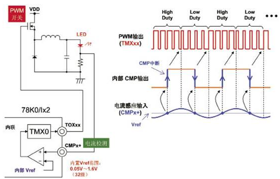 •可配合A/D轉(zhuǎn)換器進(jìn)行LED恒流控制