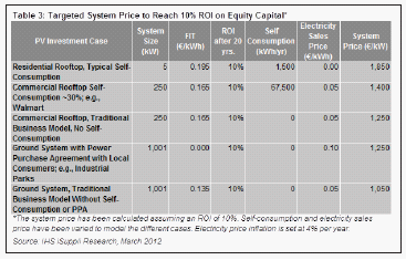在FIT調(diào)整之后,IHS iSuppli公司的計算結(jié)果顯示,如果系統(tǒng)價格為1850歐元/kW,即使取消自我消費獎勵,德國住宅系統(tǒng)仍能達到10%的股本(20%)投資回報率。由于德國市場的價格已經(jīng)降到這樣的水平,住宅領(lǐng)域?qū)⒗^續(xù)提供有吸引力的投資條件,盡管政府降低FIT。