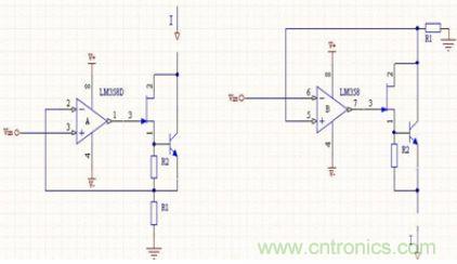 但是這會(huì)增加成本,因?yàn)楹懔鞫O管比較貴。另一個(gè)簡單的方法,就是用一個(gè)晶體三極管來加大電流。圖15表明了采用NPN和PNP三極管進(jìn)行電流放大的電原理圖。