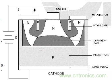 當(dāng)一個(gè)反向偏壓加到PN結(jié)的陰極和陽極時(shí),這個(gè)恒流二極管開始導(dǎo)通,當(dāng)反向偏壓增加到VL時(shí)(見圖2),其電流由于N區(qū)的體電阻也跟著增加,當(dāng)電流增加到 曲線的拐點(diǎn)時(shí),在N區(qū)和P型柵之間形成一個(gè)耗盡層。這個(gè)耗盡層減小了N區(qū)中電流的路徑也就減慢了電流的增加速度。結(jié)果這個(gè)耗盡層遇到了P型柵于是就產(chǎn)生了 夾斷效應(yīng),這使得電流變成恒定而幾乎和所加電壓無關(guān),直到所加電壓達(dá)到一個(gè)擊穿點(diǎn)Vb。如果所加電壓反過來,那么就相當(dāng)于一個(gè)正向電壓加到一個(gè)PN結(jié),其 特性就和一個(gè)普通二極管加上正向電壓時(shí)一樣。