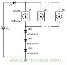 為了加大電流,最簡單的方法就是用幾個(gè)恒流二極管并聯(lián)(圖14)
