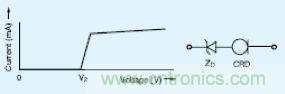 它在某一個(gè)電壓范圍內(nèi)有一段恒流區(qū)間,在這個(gè)區(qū)間,流經(jīng)的電流幾乎不變,VL為到達(dá)IL的電壓值,IL大約為0.8Ip,Vb為擊穿電壓值。但是實(shí)際的恒流二極管并不是那么理想。圖3是美國Supertex的CL1恒流二極管的特性。它的電流仍然會(huì)隨電壓而有所增加。