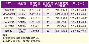 表:幾種不同的LED的特性參數(shù)