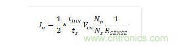 在二極管導通時間期間,輸出電壓與二極管正向壓降之和反射到輔助繞組為(VO+VF)*Na/Ns。通過在二極管導通時間結(jié)束時對繞組電壓進行采樣,可以獲得輸出電壓信息。輸出電流(Io)可使用MOSFET的峰值漏極電流(Ipk)以及電感電流的放電時間(tDIS)來估算,因為在穩(wěn)態(tài)下,輸出電流(Io)與二極管電流(ID)的平均值相同。輸出電流估算通過峰值檢測電路來確定漏極電流的峰值,并利用電感放電時間和開關周期(ts)來計算輸出電流。將此輸出信息與內(nèi)部精確參考電壓進行比較,產(chǎn)生誤差電壓(VCOMI),它可以確定MOSFET的占空比。使用Fairchild的創(chuàng)新TRUECURRENT技術,可精確控制恒定輸出電流。