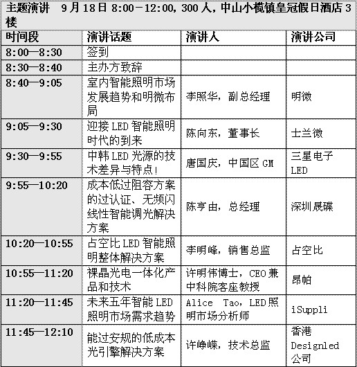 演講主題有:未來五年智能LED照明市場需求趨勢、當前LED燈具制造商面臨的四大發(fā)展陷阱、明微在智能調光市場布局和現(xiàn)有解決方案、占空比智能LED照明整體解決方案、成本低于阻容方案的線性恒流方案、崛起中的數(shù)字有線智能LED調光解決方案、外圍只需一個橋堆芯片的高集成度過安規(guī)光引擎解決方案、無頻閃低成本智能LED調光線性恒流方案、光引擎的技術發(fā)展和市場需求趨勢、中韓LED光源的技術差異和購買指南、目前LED驅動電源技術開發(fā)和市場需求趨勢、低成本動態(tài)LED景觀照明解決方案和依托臨江開發(fā)中國東部沿海LED照明市場。[page]