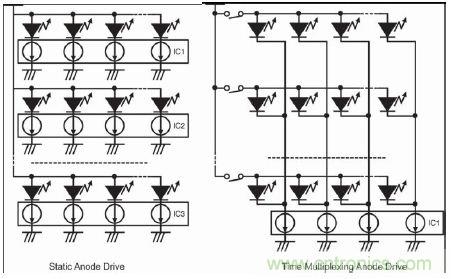 圖 8.靜態(tài)陽(yáng)極驅(qū)動(dòng)器與時(shí)分復(fù)用陽(yáng)極驅(qū)動(dòng)器