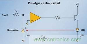 【導(dǎo)讀】在利用光來控制應(yīng)用的過程中,要長期保持原始設(shè)定的發(fā)光強度需要一個控制電路來監(jiān)控發(fā)光狀況,并控制供給光發(fā)射器件的電流以保持輸出恒定。而采用一個簡單的運算放大器電路就做到,即便發(fā)光器件老化,通過調(diào)整LED電流,一個控制環(huán)也可維持恒定的光強度。