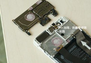 聽(tīng)筒、光線傳感器采用金屬觸點(diǎn)與主板進(jìn)行連接,同樣有類似膠水的東西進(jìn)行固定。