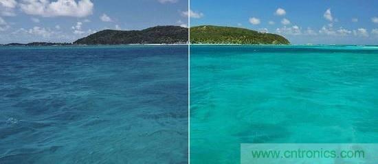 普通顯示器(左)和量子點顯示器(右)對比