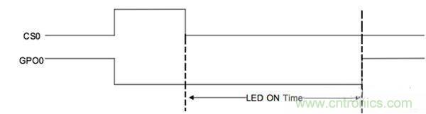 通常對于電容式按鍵來說,LED直接位于按鍵之下,從中心位置發(fā)光。用戶手指放在按鍵上,LED就會被隱藏起來。在此情況下,如果用戶手剛從按鍵上拿開LED燈就馬上關(guān)閉,那么用戶可能難以確定按鍵操作到底成功沒有。為此,我們可以讓LED在觸摸結(jié)束后保持“開啟”一小段時間,從而為用戶提供更好的視覺反饋。這種特性就叫LED開啟時間,如圖2所示。