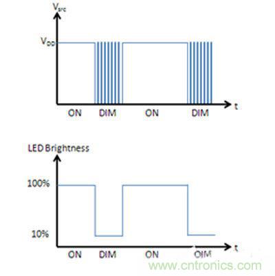 PWM是LED亮度控制應(yīng)用中的關(guān)鍵技術(shù)。通過改變PWM輸出的占空比,我們能如圖4一樣調(diào)節(jié)LED亮度,從而讓用戶界面的亮度對應(yīng)于按鍵狀態(tài)和環(huán)境光條件。事實上,改變亮度正是呼吸、淡入淡出等高級效果的基礎(chǔ)所在。我們將在第二部分介紹PWM的設(shè)計參數(shù)和多種不同實現(xiàn)方案。