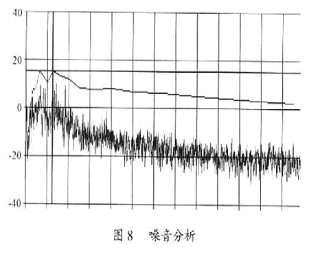 經過以上電磁兼容性設計,開關電源的輸出電壓調整率△V0/V0=O.12/12=l%,達到了預期設計要求。圖7是紋波電壓輸出圖,圖8是其工作時的噪音分析圖。