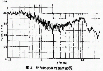 我們知道,架空的輸電線上不可避免地會檢拾到各種高頻輻射干擾,這種干擾往往以共模或差模形式出現(xiàn),從而在電源線上產(chǎn)生傳導(dǎo)干擾,通過正確的接地,可以抑制這種干擾,但只是在一定程度上的改善,因而可以加濾波器予以抑制(見測試曲線)。