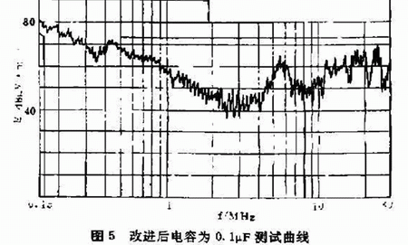 從測試圖4和圖5中能很清楚地看出測試結(jié)果。不合格的為選用0.OμF的電容濾波,改進(jìn)后選用0.1μF的電容濾波測試結(jié)果臺格。濾波器的安裝質(zhì)量同樣對衰減特性影響很大,只有把濾波器正確地安裝到UPS不間斷電源上,才能獲得預(yù)期的衰減特性.