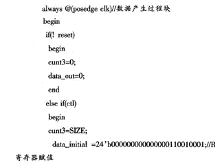 數(shù)據(jù)寫入控制程序用 Verilog語言編寫,在QuartusⅡ6.0環(huán)境下編寫編譯并配置器件引腳。由于源程序非常大,這里只給出了R寄存器賦值的部分程序代碼。