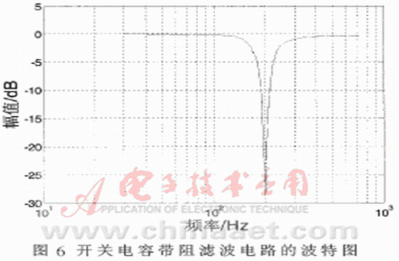 根據(jù)實驗數(shù)據(jù)繪制的開關(guān)電容帶阻濾波器的波特圖如圖6所示。