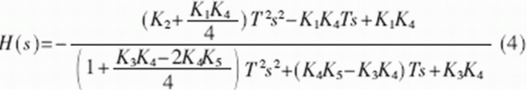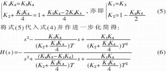 其中i=1,2,3,4,5。通過雙線性變換把式(3)轉(zhuǎn)化為連續(xù)時間傳遞函數(shù)模型: