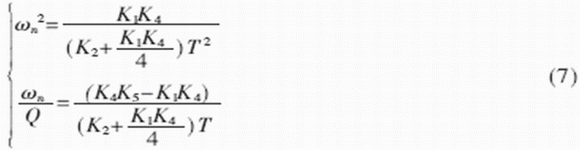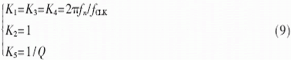 令濾波器的中心角頻率為ωn,品質(zhì)因數(shù)為Q,于是有: