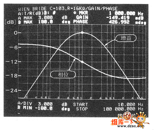 相位特性在fo=1kHz時(shí)為0,fIN<fo時(shí)相位超前,fIN>fo時(shí)相位延遲。所以,應(yīng)用在特定頻率凡處相位為0的特性來形成振蕩電路。
