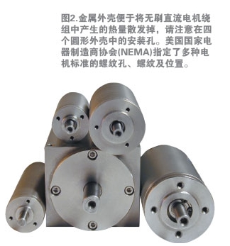 外殼散熱:對于特定的電機尺寸和扭矩負載,無刷直流電機需要在比其它兩種電機更低的內(nèi)部溫度下工作。無刷直流電機的外殼溫度通常與電機繞組溫度直接相關(guān),由于有刷直流電機具有較高的內(nèi)部熱阻抗,其穩(wěn)定狀態(tài)的外殼溫度通常比繞組溫度低得多(但這會造成轉(zhuǎn)子發(fā)熱);混合式步進電機經(jīng)常會發(fā)熱,設(shè)計師應(yīng)該設(shè)計好產(chǎn)品,防止人員接觸發(fā)熱的電機。