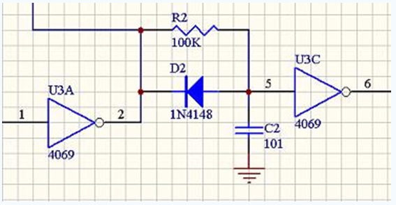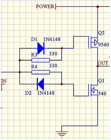 這個(gè)電路要求在IN端輸入的是邊緣陡峭的方波脈沖,因此控制信號(hào)從單片機(jī)或者其他開(kāi)路輸出的設(shè)備接入后,要經(jīng)過(guò)施密特觸發(fā)器(比如555)或者推挽輸出的高速比較器才能接到IN端。如果輸入邊緣過(guò)緩,二極管延時(shí)電路也就失去了作用。
