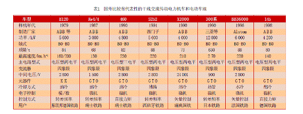 [page]20世紀70年代以來,電力電子學和微電子技術(shù)的出現(xiàn)和進步,又重新喚起人們對交流傳動系統(tǒng)的熱情。自1971年世界首臺采用異步交流傳動系統(tǒng)的內(nèi)燃機車DE2500問世以來,交流傳動系統(tǒng)以其突出的優(yōu)越性受到了各國鐵路運輸部門的關(guān)注,獲得了長足的發(fā)展,并已基本取代了直流傳動系統(tǒng)。與直流傳動機車相比,交流傳動具有無可比擬的優(yōu)越性,這已經(jīng)在各國鐵路運輸系統(tǒng)中得到了廣泛的驗證。交流傳動所用的三相交流異步電動機比直流電動機的功率/體積比和功率/重量比更大,無需經(jīng)常維護,故障率低。異步電動機的恒功率區(qū)比直流電動機大許多,轉(zhuǎn)速更高,起動牽引力大,持續(xù)功率大,有利于實現(xiàn)重載和高速牽引。交流傳動可以很容易地實現(xiàn)電氣制動,大大減少制動閘瓦的消耗,并可以利用制動時反饋的能量,起到節(jié)能節(jié)油的作用,經(jīng)濟效益顯著。另外,交流傳動機車的一個突出的優(yōu)點在于其優(yōu)良的粘著特性,由于異步交流電動機變頻調(diào)速系統(tǒng)具有很硬的機械特性,車輪更不容易打滑或者空轉(zhuǎn)。其次,交流傳動電力機車牽引和再生工況的功率因數(shù)均接近于1,不僅降低了電網(wǎng)損耗而且在再生制動時可將高質(zhì)量電能反饋給電網(wǎng),消除了電網(wǎng)對信號和通信系統(tǒng)的干擾。再者,機車采用交流牽引電動機后,簧下重量大大減輕,改善了輪軌動力學性能,降低了機車輪緣磨耗。隨著磁場定向矢量控制和直接轉(zhuǎn)矩控制等高性能異步電動機控制策略的應(yīng)用,交流傳動機車的調(diào)速性能已經(jīng)能夠達到甚至超過直流傳動機車。表1是國外比較有代表性的使用交流傳動的電力機車和電動車組。
