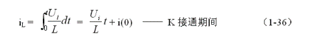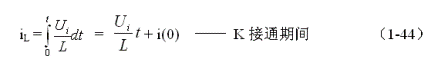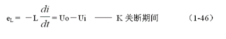 式中負(fù)號(hào)表示反電動(dòng)勢(shì)eL的極性與(1-43)式相反,即:K接通與關(guān)斷時(shí)電感的反電動(dòng)勢(shì)的極性正好相反。對(duì)(1-46)式進(jìn)行積分得: