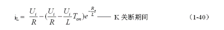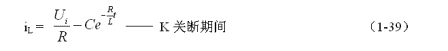 式中負(fù)號(hào)表示反電動(dòng)勢(shì)eL的極性與(1-35)式中的符號(hào)相反,即:K接通與關(guān)斷時(shí)電感的反電動(dòng)勢(shì)的極性正好相反。對(duì)(1-38)式階微分方程求解得: