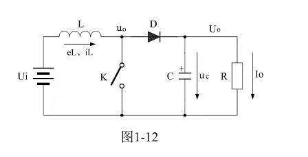 當(dāng)控制開(kāi)關(guān)K接通時(shí),輸入電源Ui開(kāi)始對(duì)儲(chǔ)能電感L加電,流過(guò)儲(chǔ)能電感L的電流iL開(kāi)始增加,同時(shí)電流在儲(chǔ)能電感中也要產(chǎn)生反電動(dòng)勢(shì)eL;當(dāng)控制開(kāi)關(guān)K由接通轉(zhuǎn)為關(guān)斷的時(shí)候,儲(chǔ)能電感也會(huì)產(chǎn)生反電動(dòng)勢(shì)eL。eL反電動(dòng)勢(shì)的方向與開(kāi)關(guān)K關(guān)斷前的方向相反,但與電流的方向相同,因此,在控制開(kāi)關(guān)K兩端的輸出電壓uo等于輸入電壓Ui與反電動(dòng)勢(shì)eL之和。